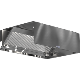 Exhaust only wall canopy hoods introduce supply air through ceiling diffusers or external supply plenums.